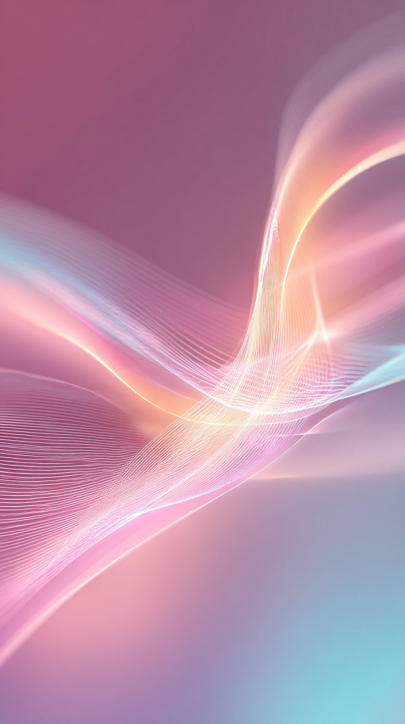 Мягкий пастельный фон с абстрактными плавными линиями, футуристичный минималистичный дизайн.