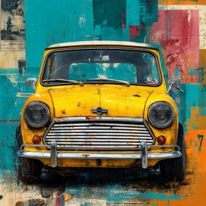 Коллаж с винтажным Mini Cooper