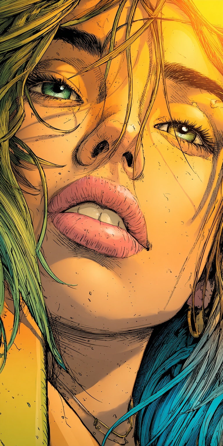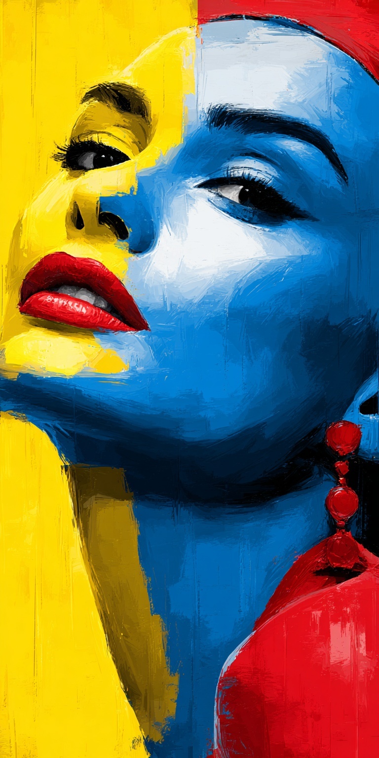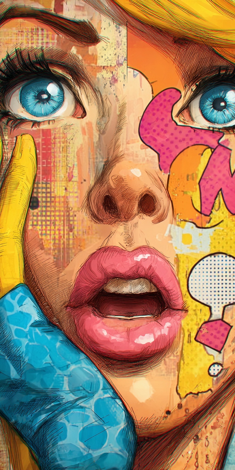 Рисунок женского лица в стиле поп-арт с яркой стилизацией и выразительной графикой