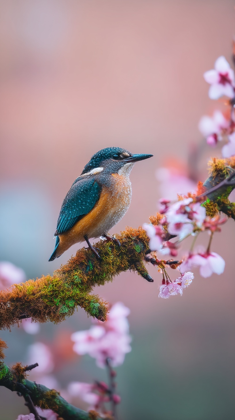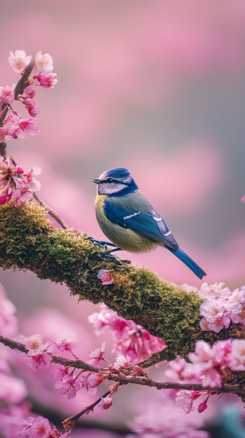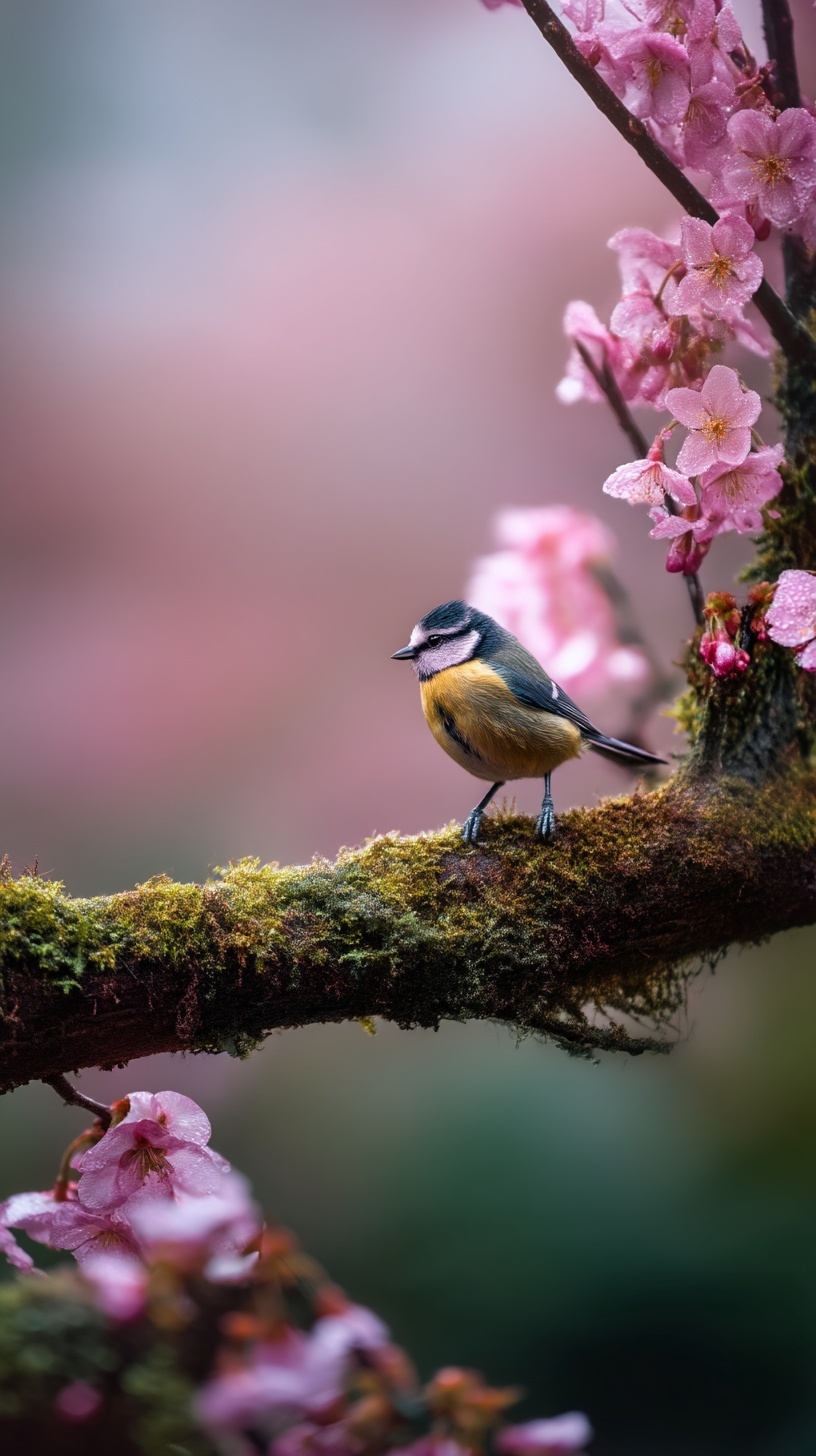 Создайте идеальное изображение в стиле профессиональной макросъемки дикой природы. Этот готовый промпт для нейросети Midjourney генерирует невероятно детализированное и атмосферное изображение маленькой птицы на цветущей сакуре.