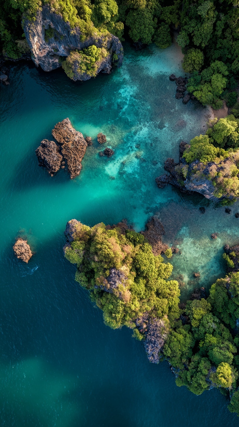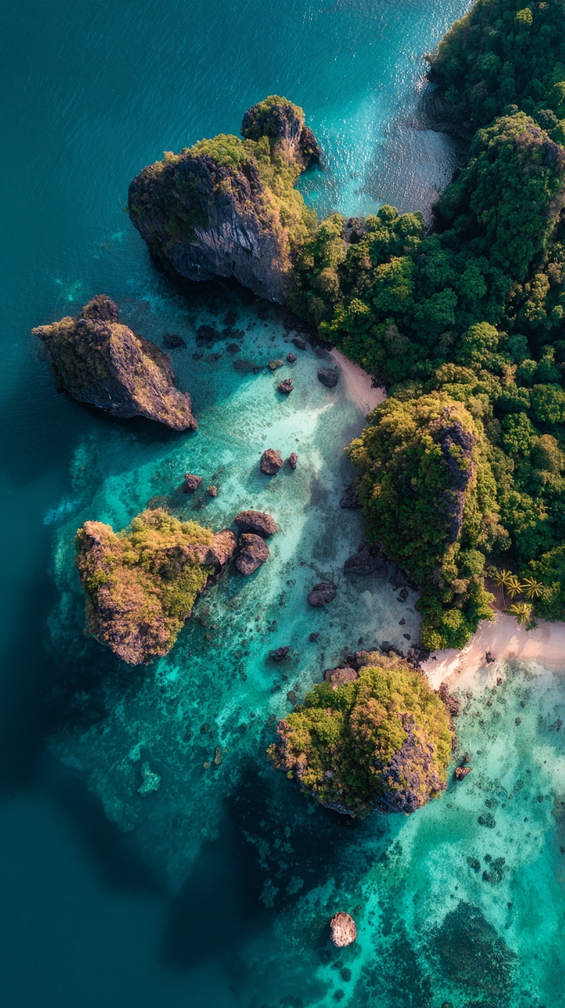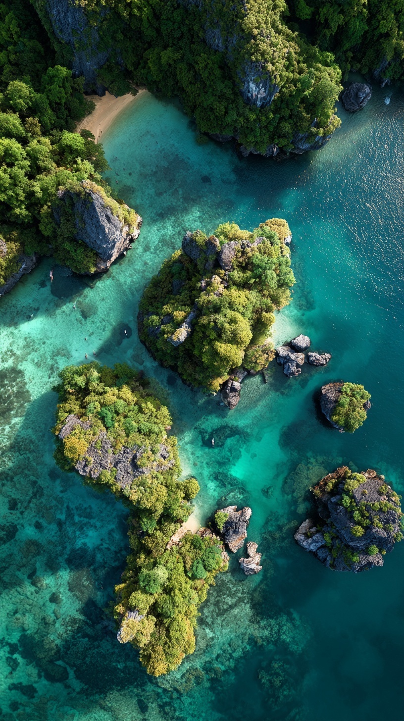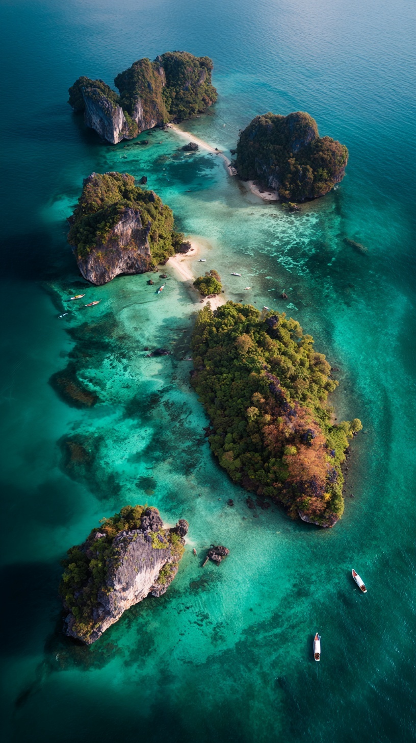 Аэросъемка Краби: тропические острова с зеленью и бирюзовой водой.