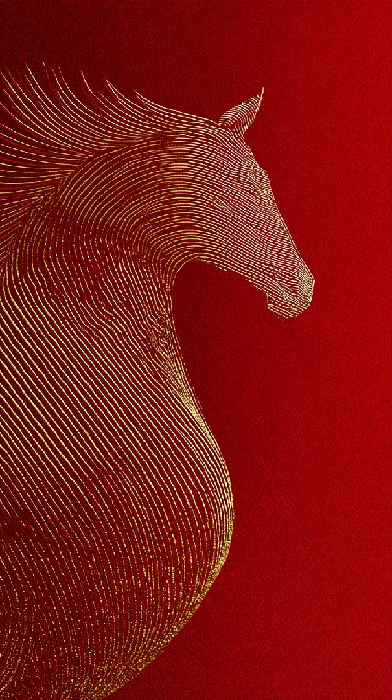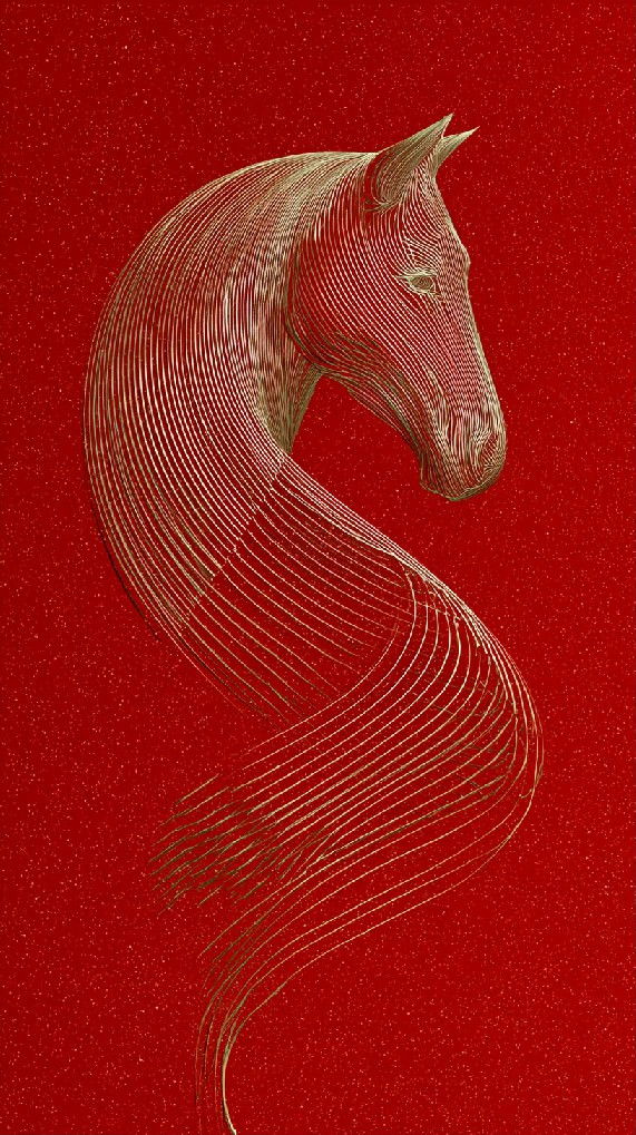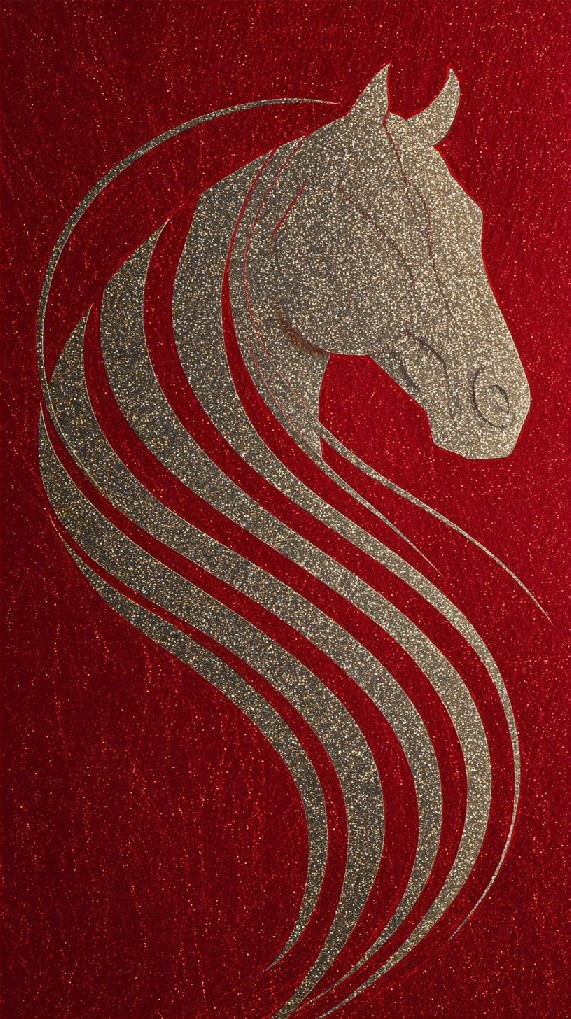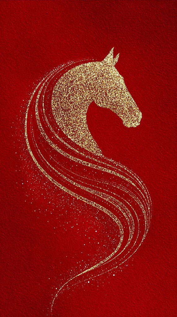 Голова лошади и блестящие серебряные, золотые линии. Логотип в высоком разрешении подчёркивает роскошь и современность, сочетая золотую текстуру и мерцание.