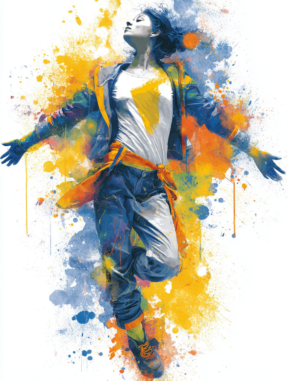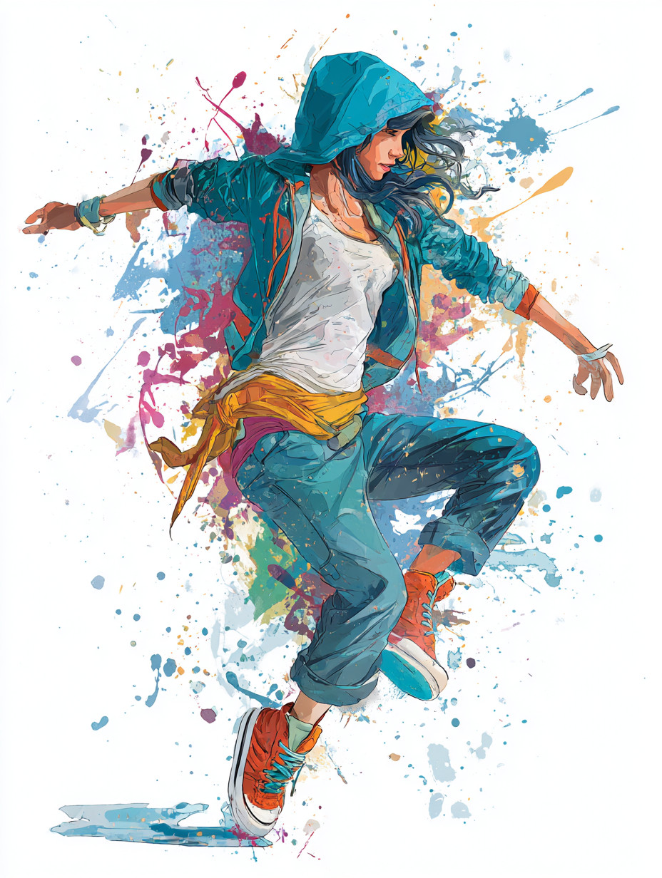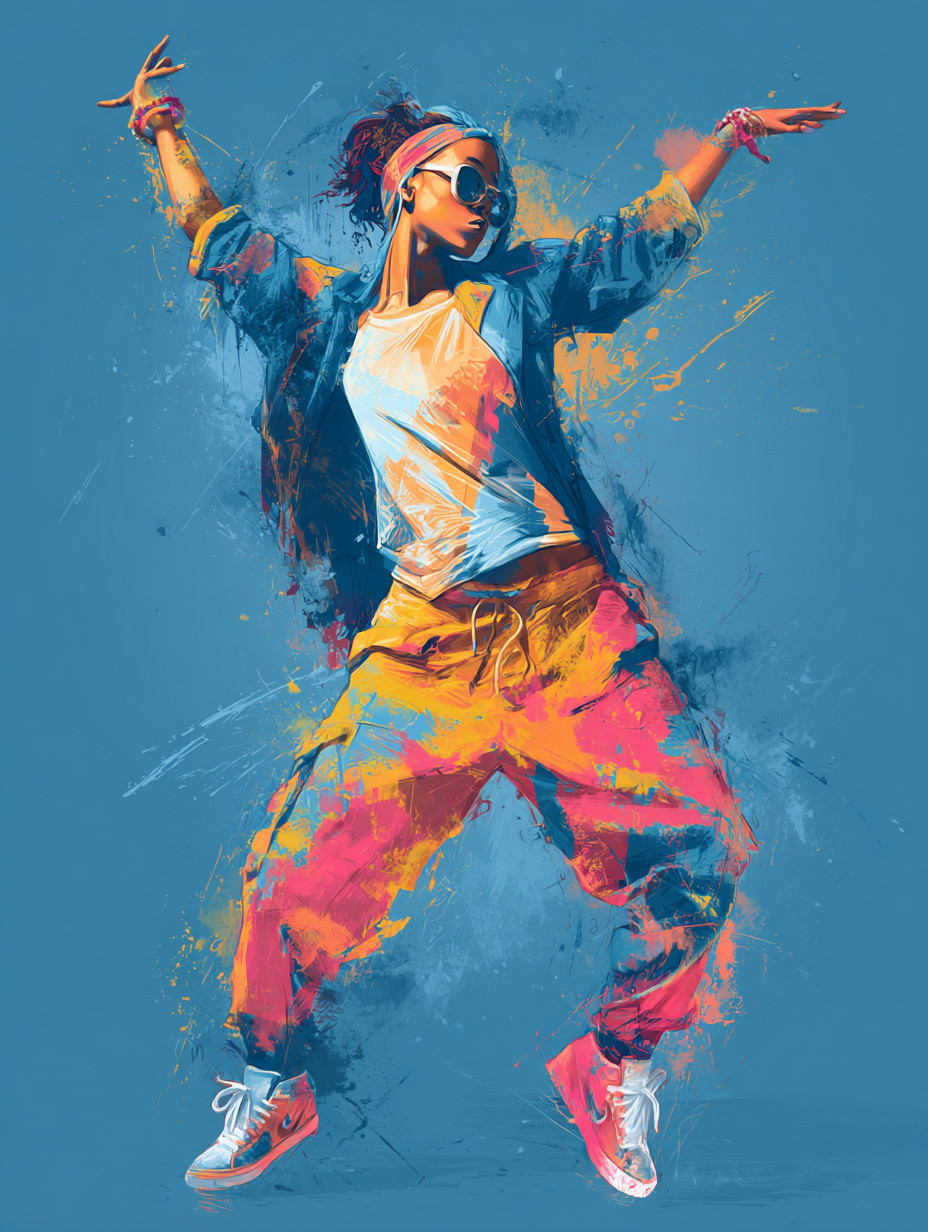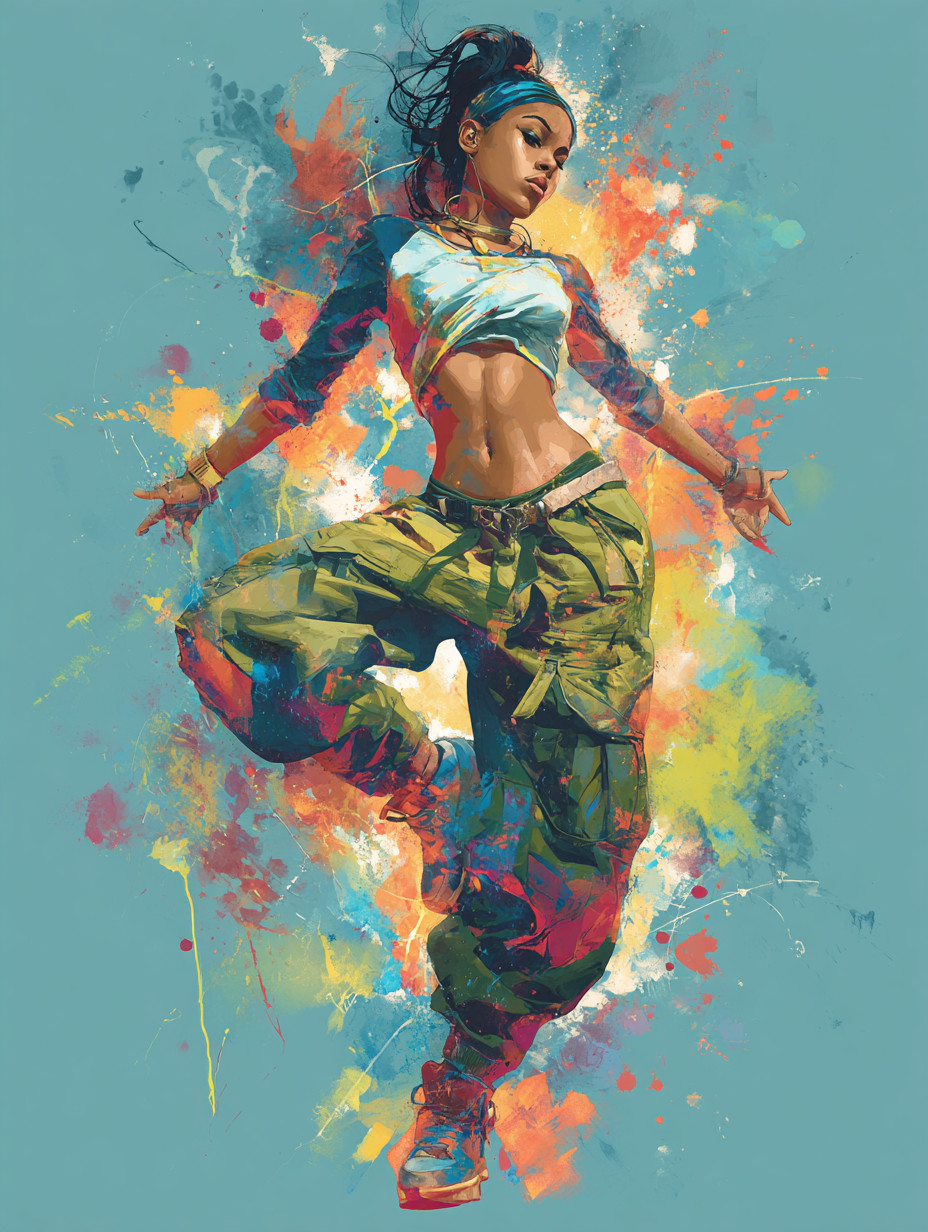 Изображение уверенной в себе женщины, танцующей в хип-хоп стиле.