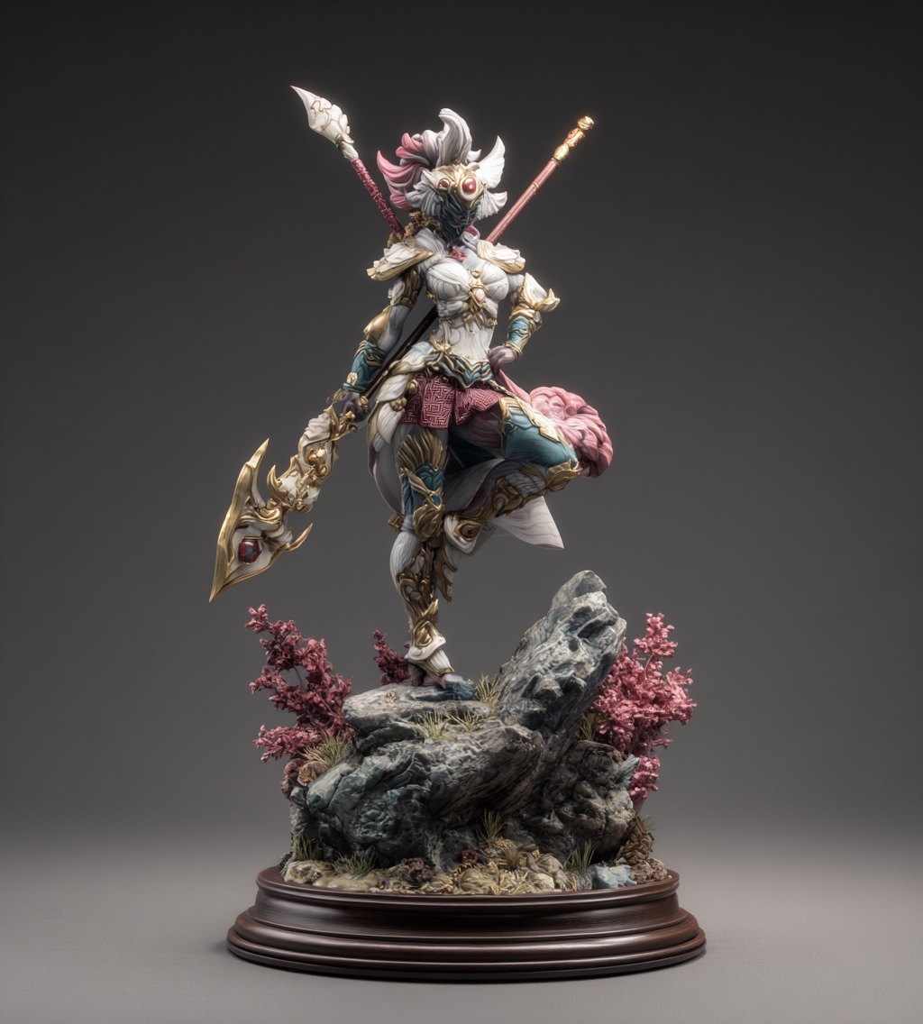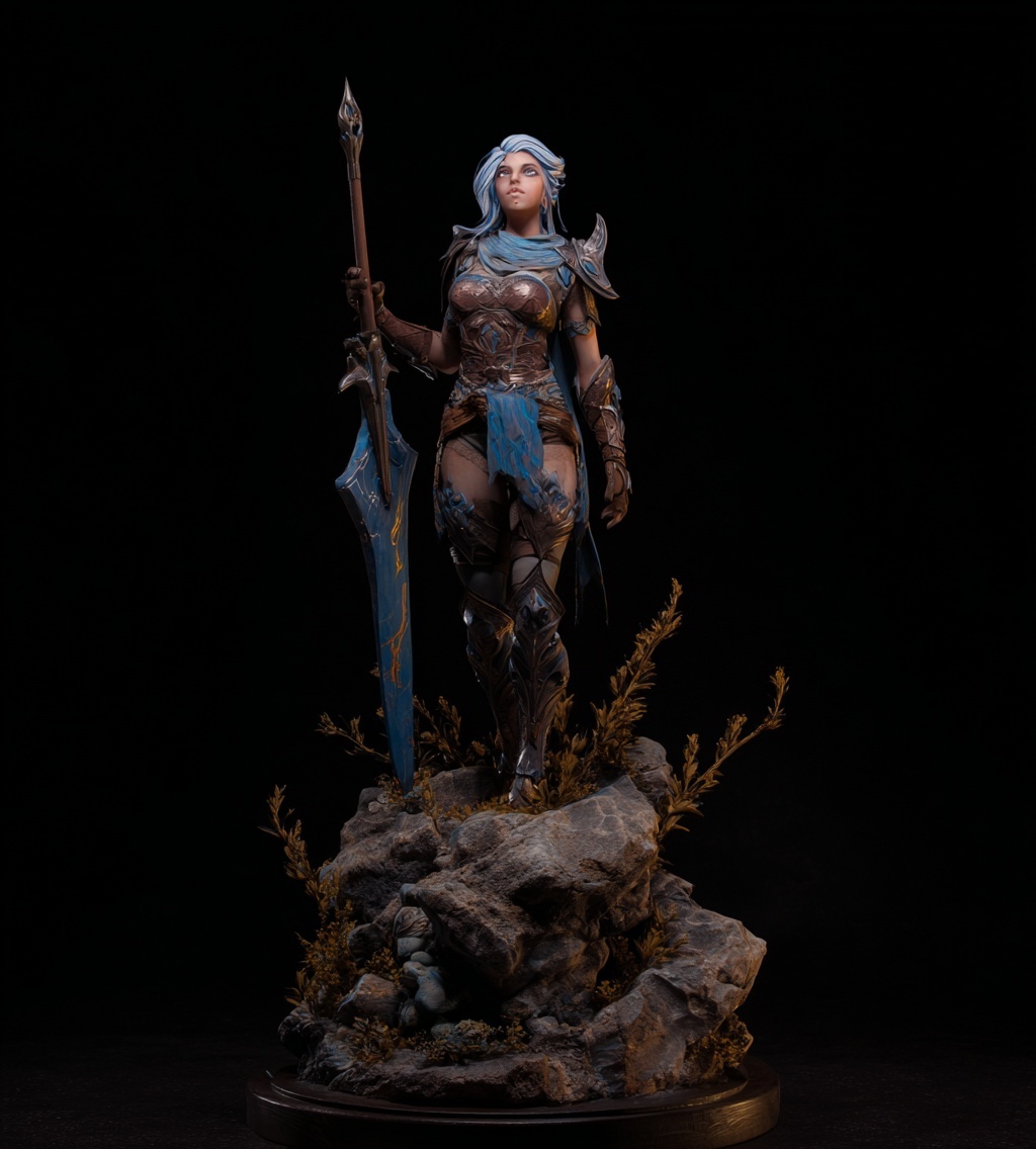 Фигурка женского фэнтези-персонажа, напечатанная на 3D-принтере и профессионально раскрашенная.