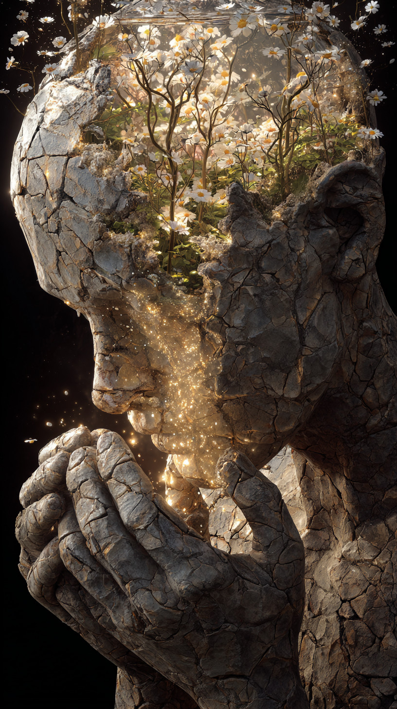 Внешний мир сухой и потрескавшийся, внутренний — живой и сакральный.