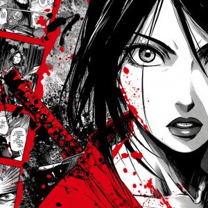 Красная и черная цветовая гамма. Элементы цветов сакуры, брызги кровавых чернил.