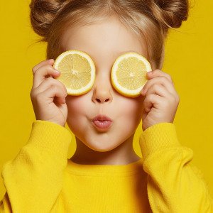 Яркий и игривый портрет ребенка с лимонами