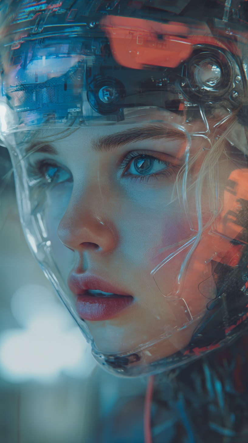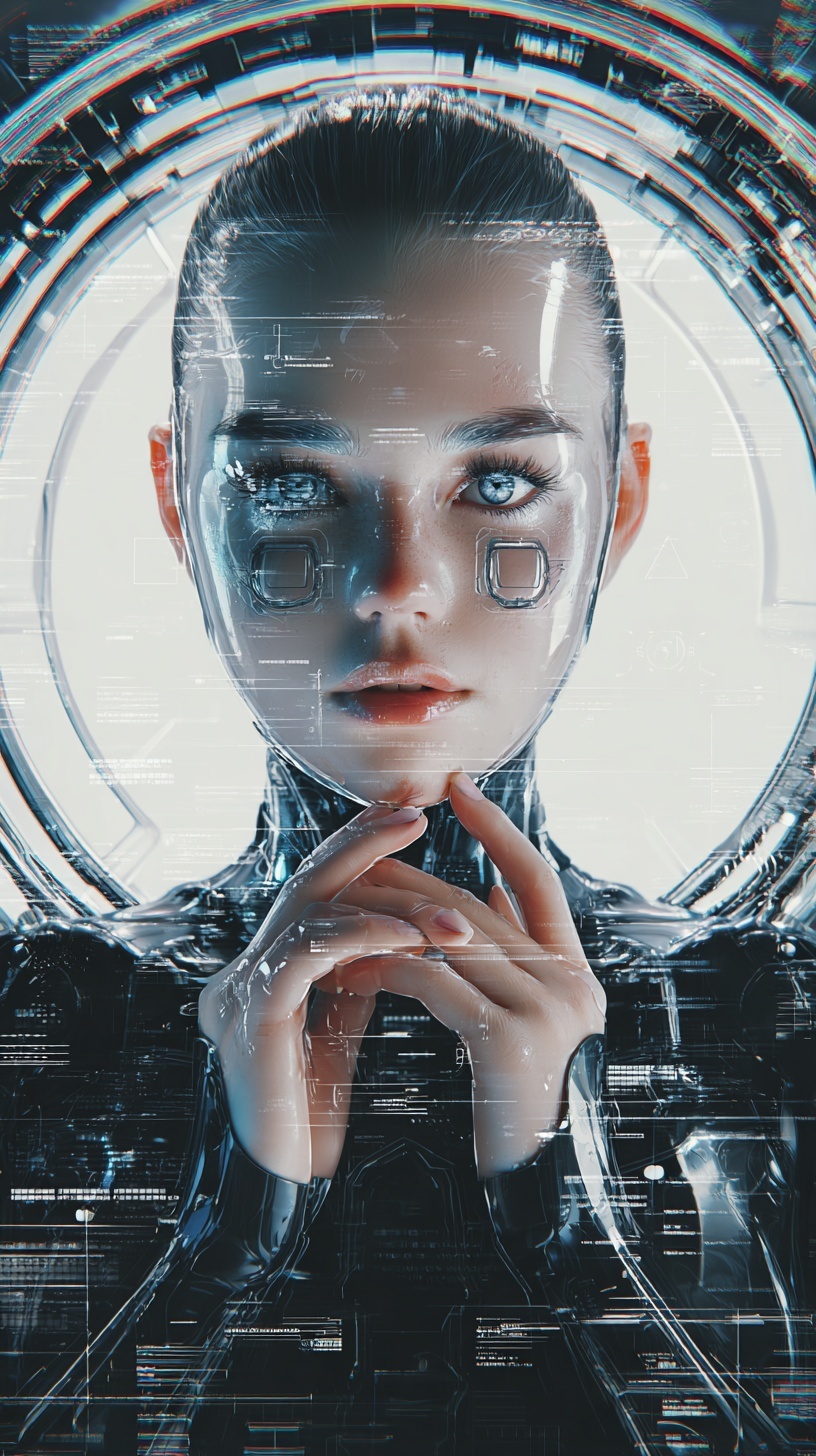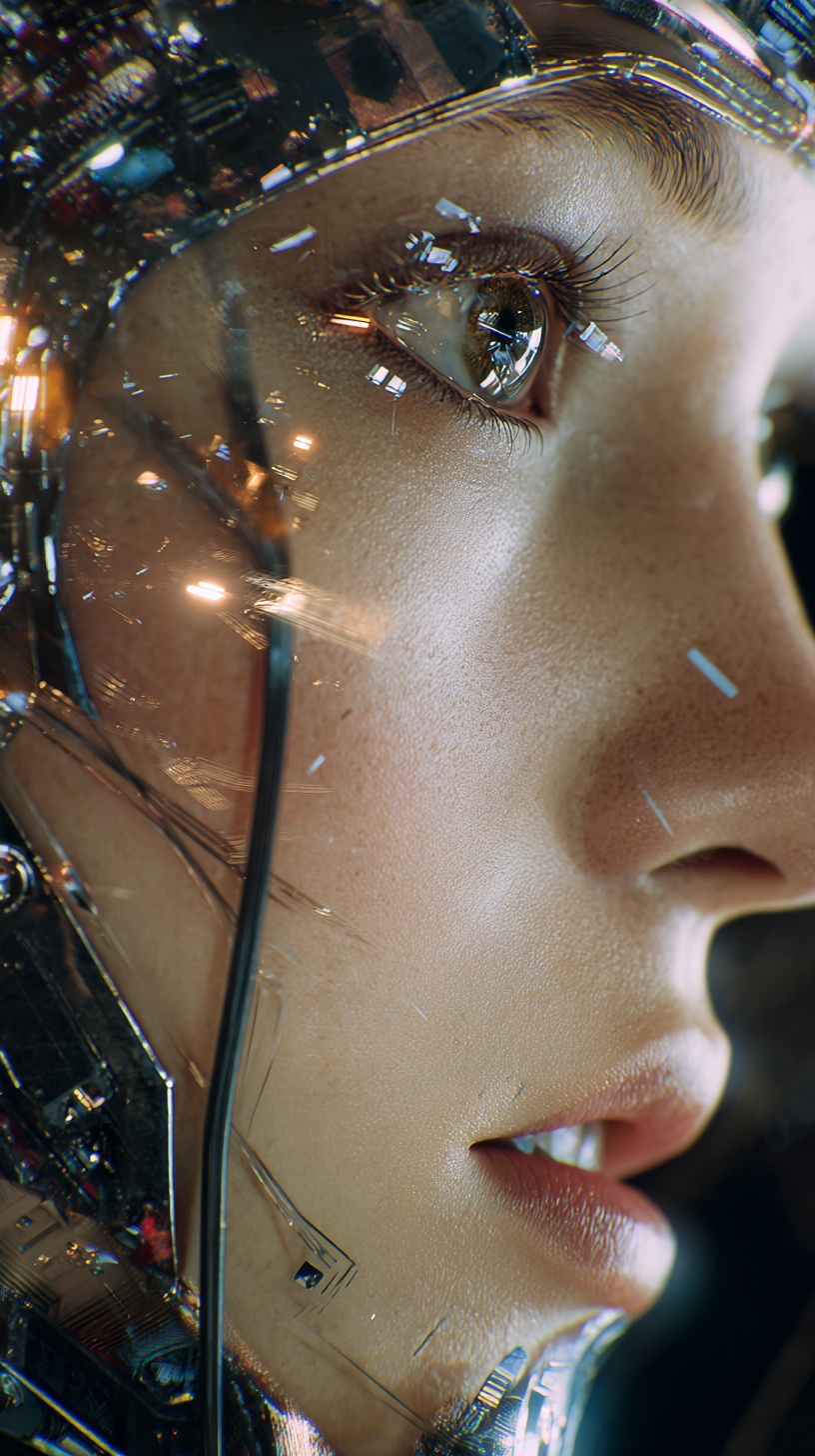 Изображение девушки-андроида с высокой детализацией.